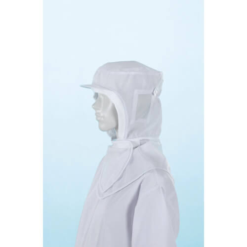 ฮู้ดที่ป้องกันไม่ให้เส้นผมหลุดร่วง ซึ่งจำเป็นสำหรับสถานที่จัดการอาหาร วัสดุตาข่ายถูกนำมาใช้ในพื้นที่สำคัญ