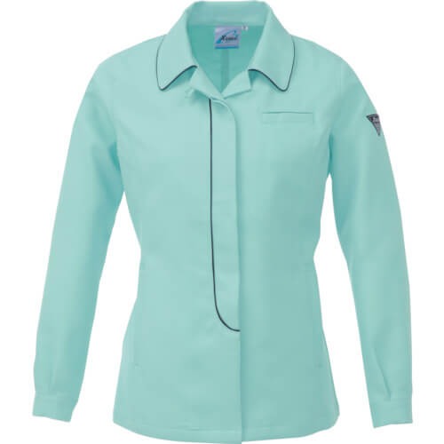 นี่คือแจ็คเก็ตสไตล์ปุ่มขึ้นสำหรับผู้หญิง ท่อสีที่ปกเสื้อและสาบเสื้อทำให้แจ็คเก็ตทำงานตัวนี้ใช้สีเรียบๆ ดึงดูดใจสำหรับแฟชั่นลำลอง นอกจากนี้ยังสามารถใช้กับงานในสำนักงานได้อีกด้วย