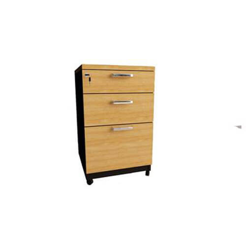 ผลิตจากไม้ Particle Board ตู้ (Top) หนา 25 มม. ปิดขอบ PVC Edge เคลือบผิว Melamine กันน้ำ ทนต่อความร้อน และรอยขีดข่วน จัดเก็บ 3 ลิ้นชัก พร้อมกุญแจล็อก ติดล้อเลื่อนสะดวกเคลื่อนย้าย ขนาด 42×48x65 ซม. สีบีช-ดำ |