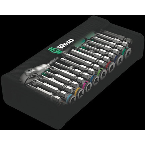 8000 A Zyklop Speed Ratchet with 1/4" drive 05003500001 1x 1/4" x 152 mm 8790 HMA Zyklop 1/4" socket 05003514001 1x 3/16" x 23 mm 05003515001 1x 7/32" x 23 mm 05003516001 1x 1/4" x 23 mm 05003517001 1x 9/32" x 23 mm 05003518001 1x 5/16" x 23 mm 05003519001 1x 11/32" x 23 mm 05003520001 1x 3/8" x 23 mm 05003521001 1x 7/16" x 23 mm 05003522001 1x 1/2" x 23 mm 8794 LA Zyklop extension with free-turning sleeve, long, 1/4" 05003526001 1x 1/4" x 150 mm 8794 A Zyklop wobble extension, 1/4" 05003527001 1x 1/4" x 56 mm 8784 A1 Zyklop bit adaptor, 1/4" 05003529001 1x 1/4" x 37 mm 851/4 TZ bits 05059805001 1x PH 1 x 50 mm 05059810001 1x PH 2 x 50 mm 05059815001 1x PH 3 x 50 mm 855/4 TZ bits 05060005001 1x PZ 1 x 50 mm 05060010001 1x PZ 2 x 50 mm 867/4 Z TORX® bits 05060132001 1x TX 10 x 50 mm 05060133001 1x TX 15 x 50 mm 05060134001 1x TX 20 x 50 mm 05060135001 1x TX 25 x 50 mm 05060136001 1x TX 27 x 50 mm 05060137001 1x TX 30 x 50 mm 840/4 Z bits 05135096001 1x 5/32" x 50 mm 05135097001 1x 3/16" x 50 mm 05135098001 1x 7/32" x 50 mm 05135099001 1x 1/4" x 50 mm Hook and Loop Fastener Strip 120 1x 120x50 mm |