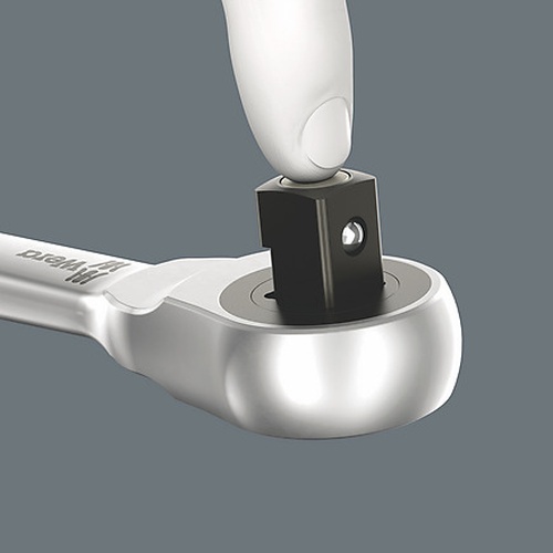 Extremely slim ratchet with long lever Return angle of only 4.7° Absolutely smooth switchover of the non-detachable push-through square With Take it easy tool finder: colour coding by size |