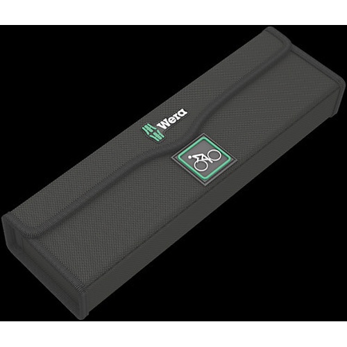 The 16-piece set from the screwdriving tool specialist Wera solves the most important screwdriving problems associated with bicycles, with reliable control of applied torque to protect sensitive components. With a click-torque wrench in the unmistakable Wera design. Very robust design with high accuracy as per DIN EN ISO 6789-1: 2017-07. Easy setting and saving of the default values. The audible and tactile snapping on reaching the scale values also facilitates the safe setting of the desired torque values. The robust release mechanism guarantees a clearly audible and tactile trigger signal when the set torque is reached. For clockwise torque-control and with a reversible 45-tooth ratchet. The torque wrench is extremely space-saving and supplemented with accessories that are suitable for the torque range and adapted to the most common screwed connections on bicycles; in a robust, surface-friendly textile box. Included are: Click Torque A 5, 1/4″, 2.5 – 25 Nm, 4 sockets with 1/4″ drive, 7 Hex Plus hexagon bit sockets and 4 TORX® bit sockets. Sockets and bit sockets with Take it easy tool finder with colour coding by size – for easy and quick location of the required tool. Bit sockets with holding function for extra comfortable screwdriving without the screw falling off the tool. Incredibly compact arrangement for a lot of tools in a small space. Textile box with very high robustness and longevity. Additional surface protection through the textile outer material. Low weight and volume for easier mobility. Bit sockets with all the benefits of Wera bit technology such as fitting accuracy, wear resistance and concentric run-out properties.