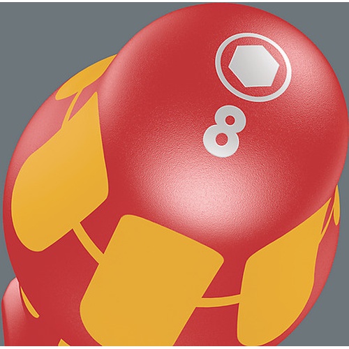 Wera VDE socket wrenches with multi-component Kraftform for fast and low-fatigue working: hard gripping zones for high working speeds whereas soft zones ensure high torque transfer. Individual testing at 10,000 volts so as to ensure safe working at the permitted voltage of 1,000 volts. The hexagonal anti-roll feature prevents any bothersome rolling away at the workplace.
