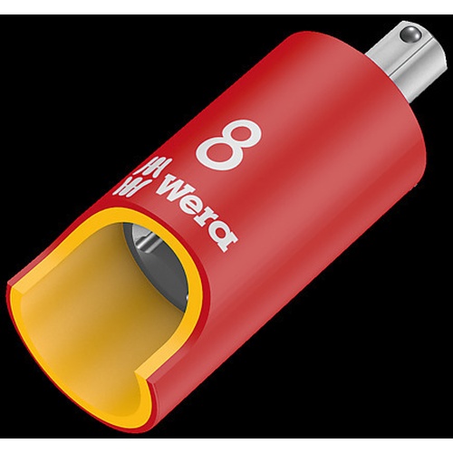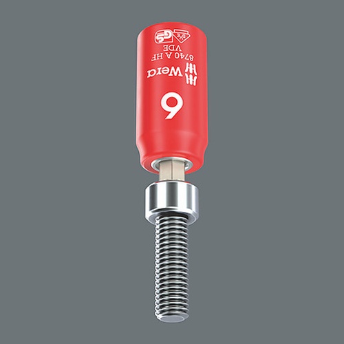 VDE 1/4″ bit socket with holding function for hexagonal socket screws for particularly comfortable screwdriving thanks to reduced risk of losing the screw when feeding it into the workpiece. With increased safety thanks to the yellow insulation core, which becomes visible if the outer red VDE insulation layer is damaged. Individually tested tools as per IEC 60900 at 10,000 V for safe working at the approved voltage of 1,000 V.