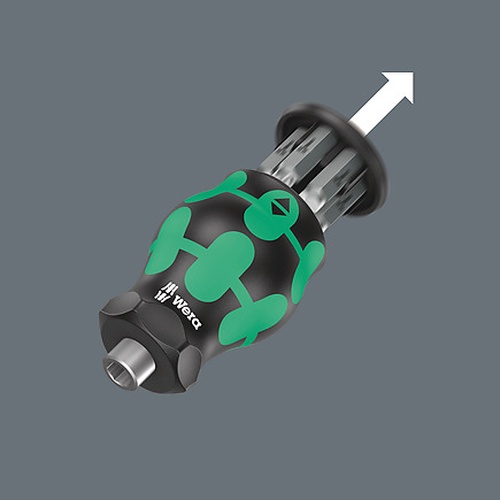Short, compact Stubby shape for working in tight installation spaces, with 6 bits in the integrated magazine Ergonomic 2-component Kraftform handle for precise work 1/4" bit mounting with strong permanent magnet Captive and swivelling bit magazine for easy removal and safe storage of bits Tough viscous bits for universal use |