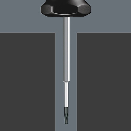 Wera torque screwdriver with fixed torque for recessed TORX® screws. Tamperproof and with a slim hex blade. Unlimited torque for loosening seized screws. Multi-component Kraftform pistol handle for pleasant, ergonomic working that prevents blisters and calluses. Hard gripping zones for high working speeds whereas soft zones ensure high torque transfer.