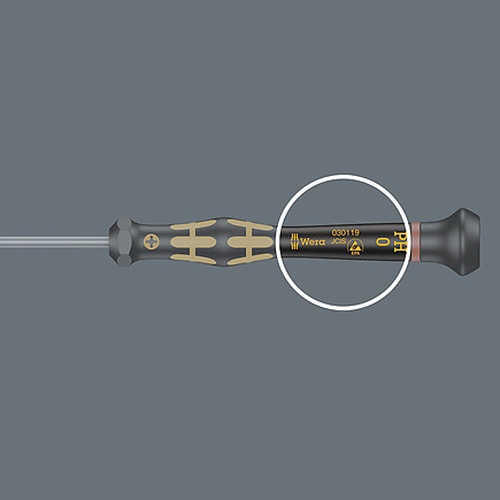 หม่วดหมู่แบรนด์ WERA Features Non-roll feature Take it easy Black Point tip ESD Tool Profiles Slotted Phillips Microstix ® Five Lobe Screwdrivers ESD Series