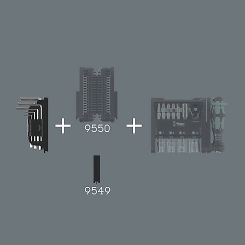 Tool-Check Modular: individual combination of different Tool-Check Modular components L-key set for hexagonal socket screws; the Hex-Plus profile reduces cylindrical turning of hexagonal socket screws Chrome-plated hexagon L-keys for outstanding surface protection and long service life. High corrosion protection. Laser-engraved and thereby wear-resistant size markings on the L-keys Adapter 9549: Rigid component to connect further Tool-Check Modular products |