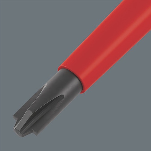 165 iS PZ VDE Insulated screwdriver with reduced blade diameter for Pozidriv screws Tip size:PZ 1 Blade length:80 mm Handle length:98 mm Blade length (inches):3 1/8″ inch 05006460001
