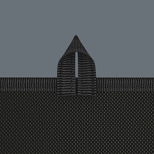Robust, rigid material Strong hook and loop fastener system to prevent unintentional opening and therefore loss of the tool Compact design for space-saving storage Low weight for easy transport Compatible with Wera 2go The pouch can be hung up even while open using the hanging loop |