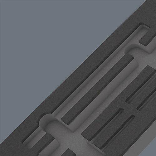 One durable foam insert, without tools; two-coloured for quick identification of missing parts; width x height x depth: 172 x 30 x 392 mm; spare foam insert for Wera item 9782; suitable for the Tool Rebel roller cabinet.
