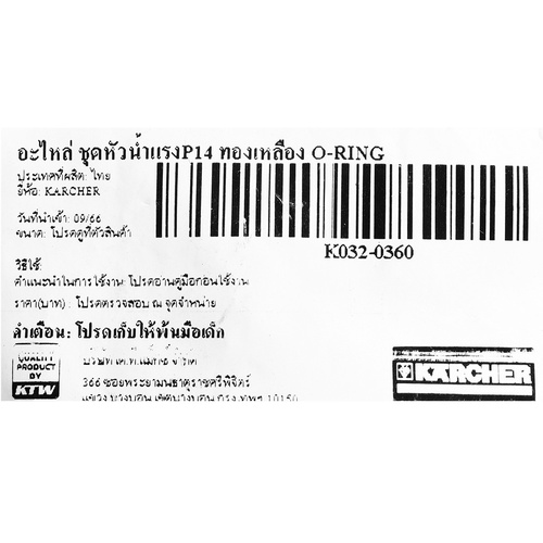 อะไหล่ ชุดหัวน้ำแรง P14 ทองเหลือง O-Ring ใช้กับเครื่องมือทำความสะอาด KARCHER