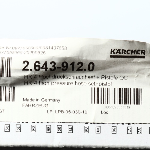 ใช้เป็นรหัสเคลมอะไหล KARCHER |