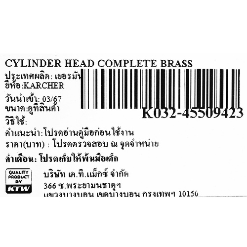อะไหล่ Cylinder Head Complete Brass ใช้กับเครื่องฉีดน้ำแรงดันสูงน้ำเย็น