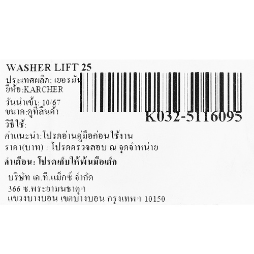 | ใช้เป็นรหัสเคลมอะไหล KARCHER |
