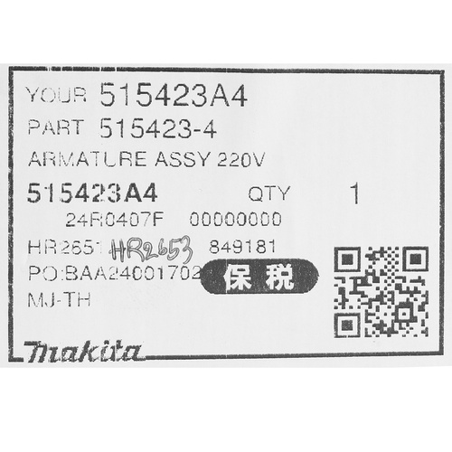 อะไหล่ ทุ่นไฟฟ้า ใช้กับเครื่องสว่านโรตารี่ MAKITA รุ่น HR2653