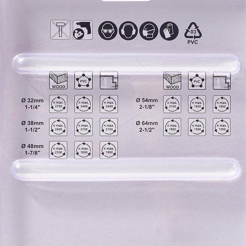 D-70203 HOLE SAW set for wood 32,38,48,54,64MM