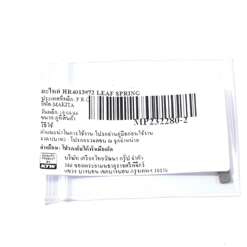 อะไหล่ Leaf Spring #72 ใช้กับเครื่องสว่านโรตารี่ MAKITA รุ่น HR-4013C, DHR400ZKU
