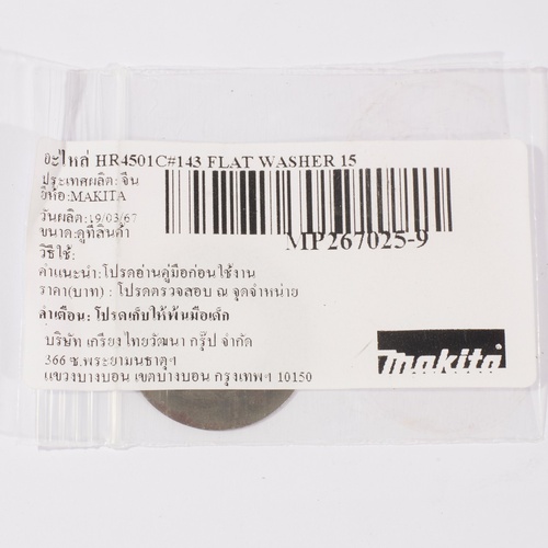 อะไหล่ Flat Washer 15 #143 ใช้กับเครื่องสว่านเจาะปูนโรตารี่ MAKITA รุ่น HR-4501C, HR-4511C และ HR-5001C