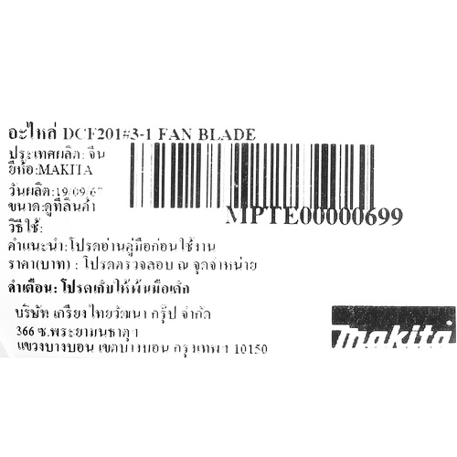 อะไหล่ Fan Blade #3-1 ใช้กับพัดลม MAKITA รุ่น DCF201, BCF201