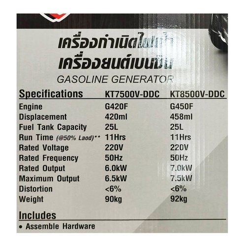 KT7500-DDC เครื่องปั่นไฟ 6.5 KW (ไฟฟ้า) |