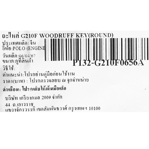 อะไหล่WOODRUFF KEY(ROUND)ใช้กับเครื่องยนต์ POLO รุ่น G210F