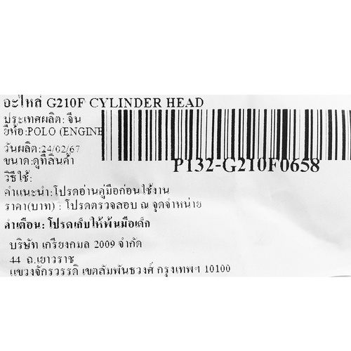 อะไหล่ Cylinder Head ใช้กับเครื่องยนต์เบนซิน 7.0 แรงม้า POLO รุ่น G210F