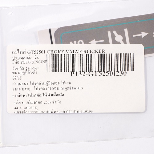 อะไหล่ Choke Valve Sticker ใช้กับเครื่องปั่นไฟอินเวอร์เตอร์ 4.5 กิโลวัตต์ POLO รุ่น GT5250I