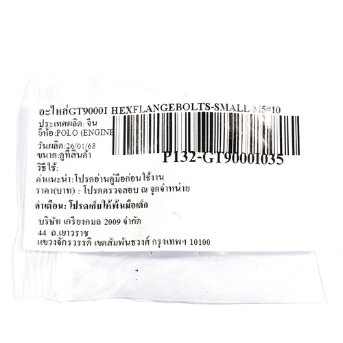 อะไหล่ Hex Flange Bolts-Small Series M5×10 ใช้กับเครื่องปั่นไฟ POLO รุ่น GT9000I