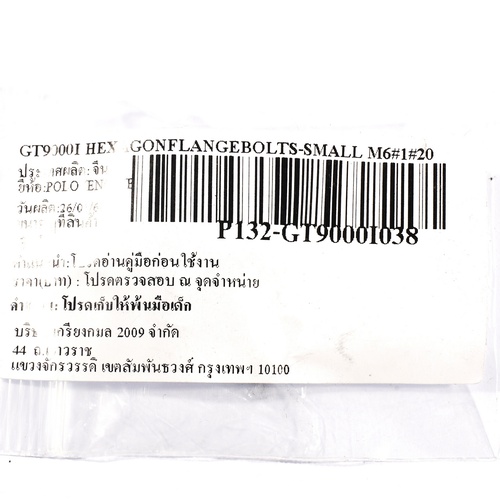 อะไหล่ Hexagon Flange Bolts-Small Series M6×1×20 ใช้กับเครื่องปั่นไฟ POLO รุ่น GT9000I