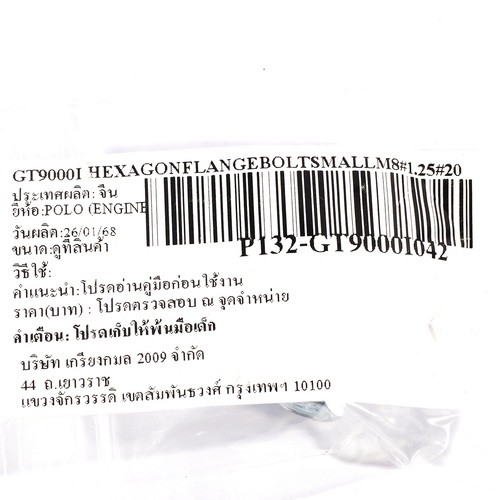 อะไหล่ Hexagon Flange Bolts-Small Series M8×1.25×20 ใช้กับเครื่องปั่นไฟ POLO รุ่น GT9000I