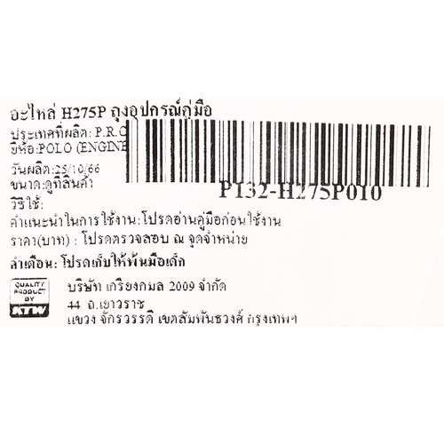 อะไหล่ ถุงอุปกรณ์คู่มือ ใช้กับเครื่องพรวนดิน 7.0 แรงม้า ขับเกียร์ POLO รุ่น H2-75P
