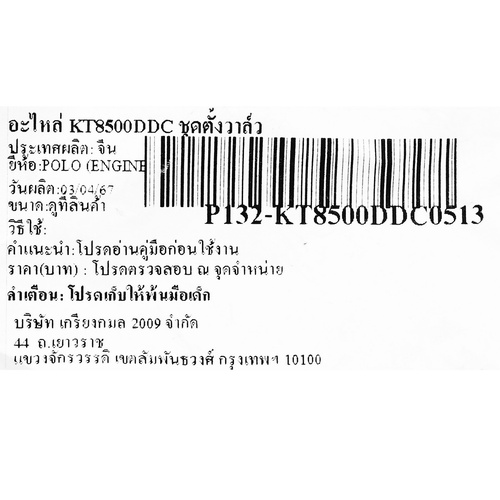 อะไหล่ KT8500DDC ชุดตั้งวาล์ว