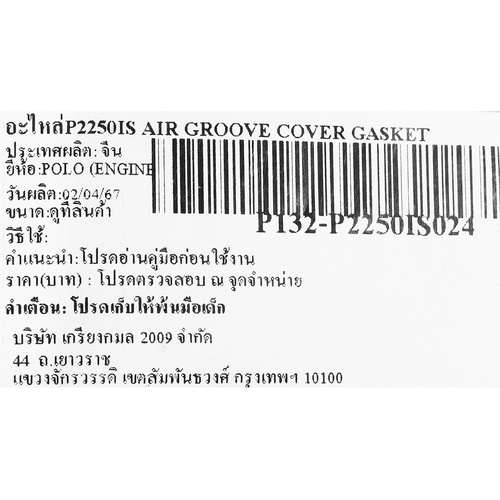 อะไหล่ Air Groove Cover Plate Gasket ใช้กับเครื่องปั่นไฟ POLO รุ่น P2250IS