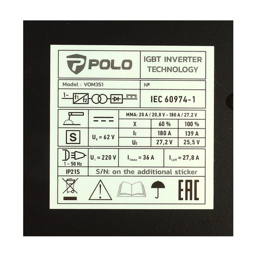 เครื่องเชื่อม ARC (IGBT) POLO รุ่น VOM351