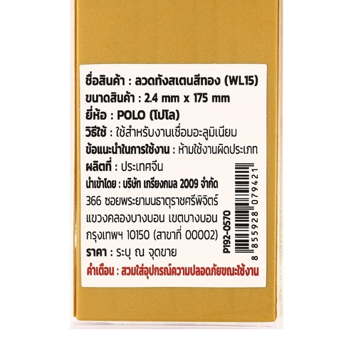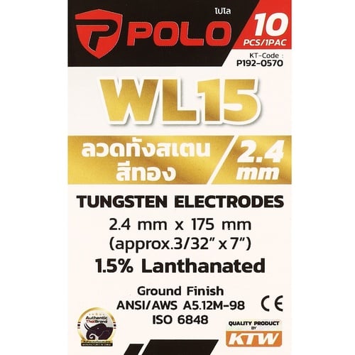 POLO ลวดทังสเตนสีทอง 2.4 X 175 มม. 1.5% Lanthanated (WL15) บรรจุ 10 ชิ้น/แพ็ค