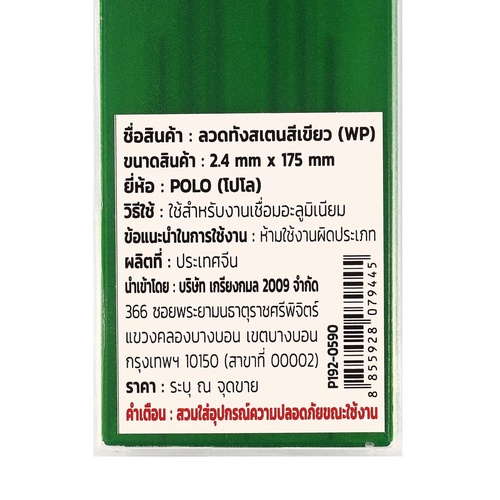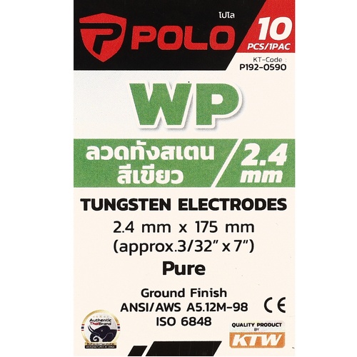 POLO ลวดทังสเตนสีเขียว 2.4 X 175 มม. Pure (WP) บรรจุ 10 ชิ้น/แพ็ค
