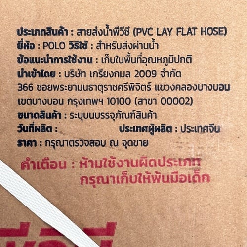 POLO สายส่งน้ำพีวีซี 1.5 นิ้ว แรงดัน 2 บาร์ 100 เมตร