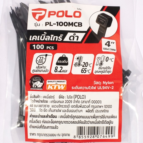 เคเบิ้ลไทร์ สีดำ POLO รุ่น PL-100MCB ขนาด 4 นิ้ว