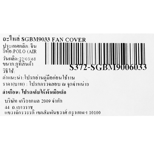 รหัสสั่งซื้อ | S372-SGBM9006033 |