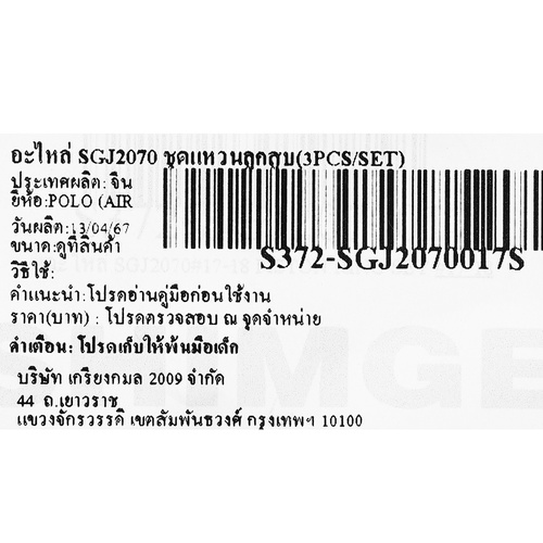 รหัสสั่งซื้อ | S372-SGJ2070017S |