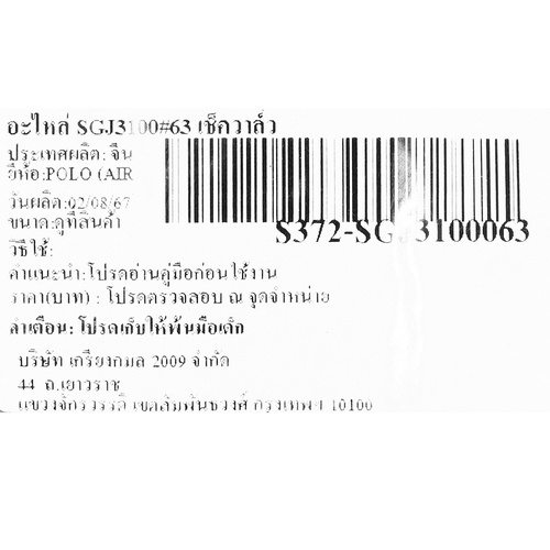 รหัสสั่งซื้อ | S372-SGJ3100063 |