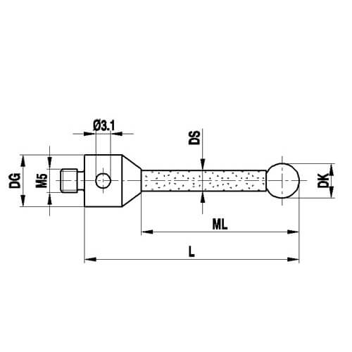 M5 straight stylus.Equivalent to Zeiss part number: 600342-8013-000.Equivalent to Q-Mark part number: ATG-5053-C.Note: measurement length is to end of ball.